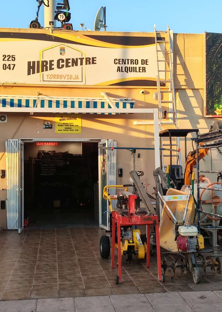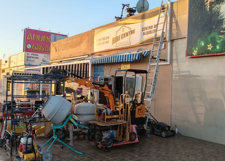 En Hire Centre Torrevieja, ofrecemos alquiler rápido y sencillo de maquinaria y herramientas para profesionales y particulares.